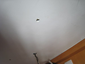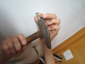 當量度好之後,他就在天花鑽孔,然後打上拉爆羅絲,今次好好彩,沒有打中鋼根呢。