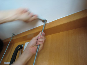 把所需的四枝絲杆,一一安裝上天花上去。