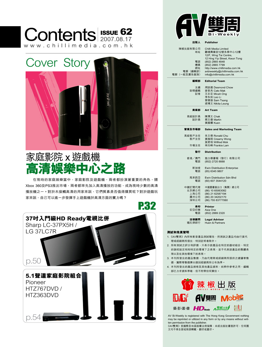 鳴謝AV雙周提供資料相片,及受權刊出封面目錄。
