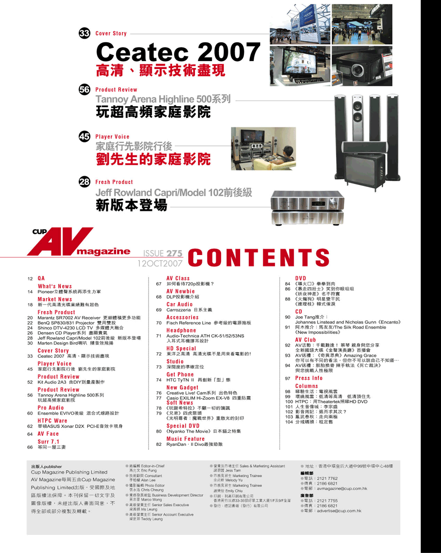 鳴謝 Av Magazine 提供資料相片,及受權刊出封面目錄。