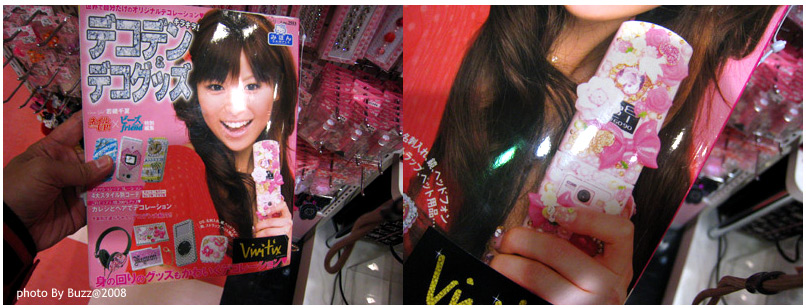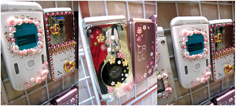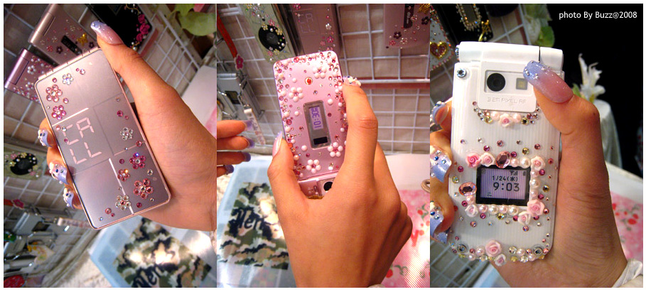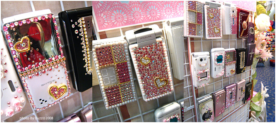 某日在台場見到一家為客人在手機上,貼上超靚靚手機花花的店鋪,