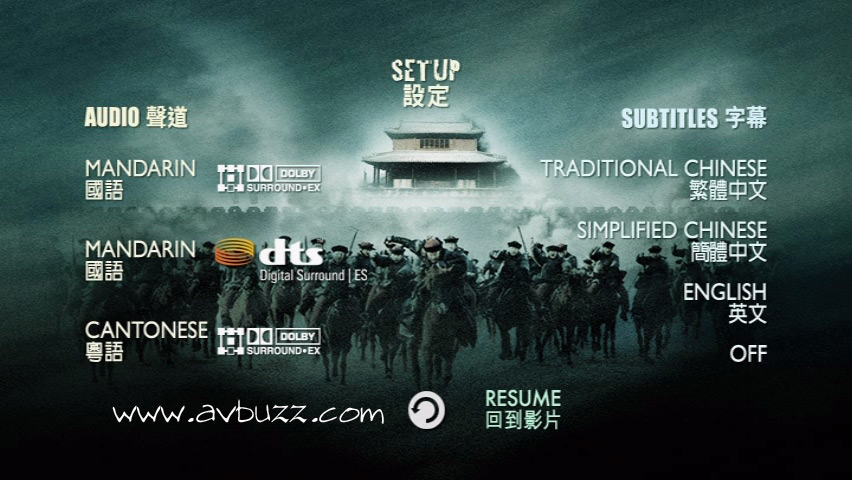 另外透過菜單的這一頁,可見到這碟所提供的聲軌和字幕選擇。