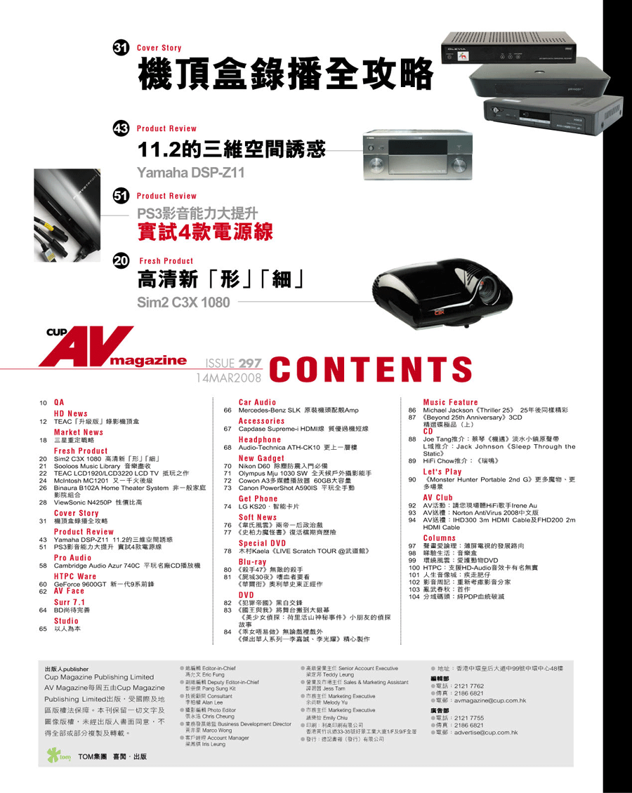 鳴謝 Av Magazine 提供資料相片,及受權刊出封面目錄。