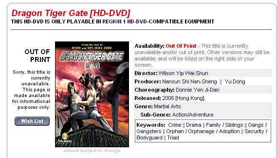 剛好宣佈碟 HD-DVD死訊,龍虎門HD-DVD立即胎死腹中,所以早前打算等龍虎門HD-DVD的朋友,請無需再等候了。