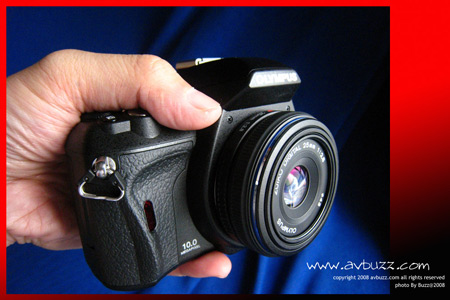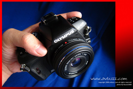 這部全球最細的單鏡反光機,配上餅鏡後的樣子,真是毒死很多人,這個 4/3 系統,