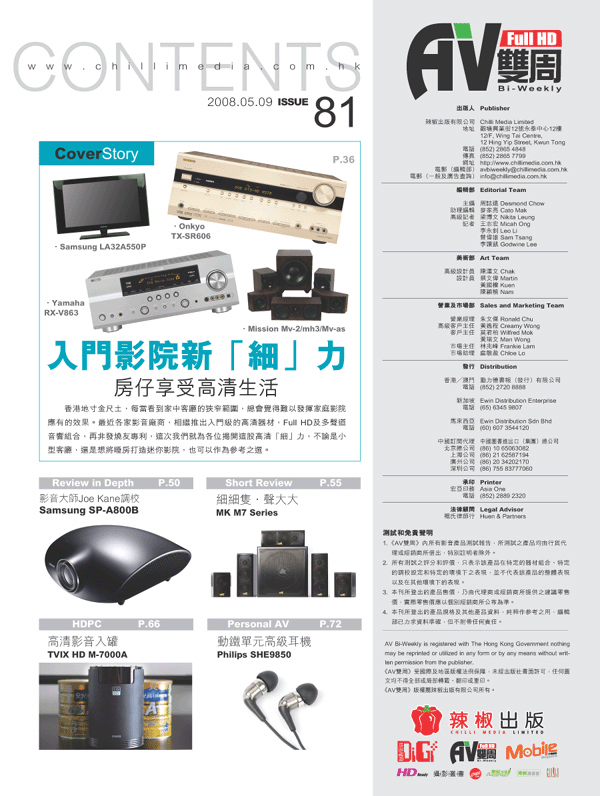 鳴謝AV雙周提供資料相片,及受權刊出封面目錄。