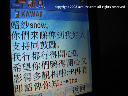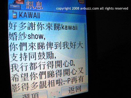婚紗展後不夠半小時,Kawaii 就第一時間發短訊給她所熟識的影友,多謝對方支持她。