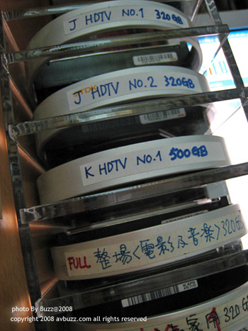 圖為 A- Keung 家中擁有的 SATA II 硬碟,他用亞加歷膠做成一個層格式柜,把他擁有的硬碟整整齊齊的獨立分隔開。