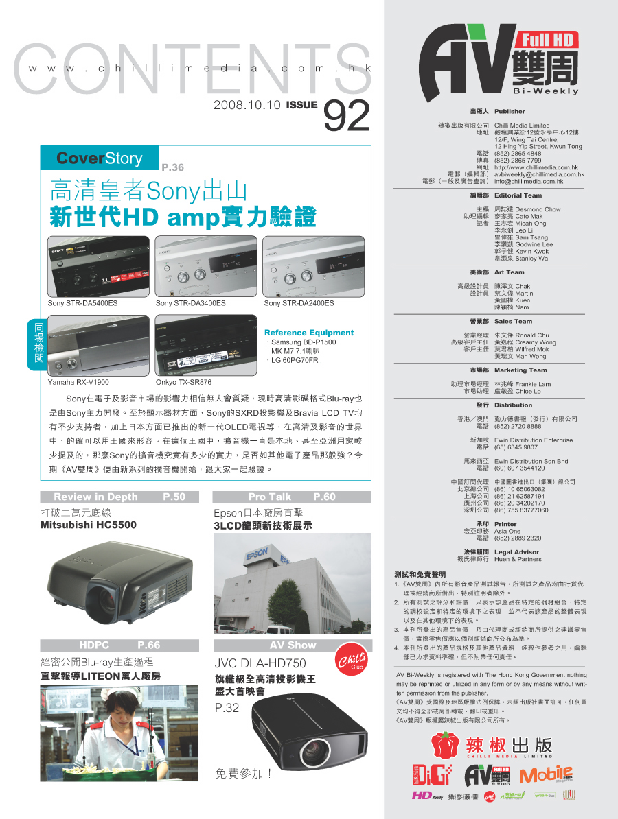 鳴謝AV雙周提供資料相片,及受權刊出封面目錄。