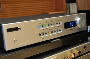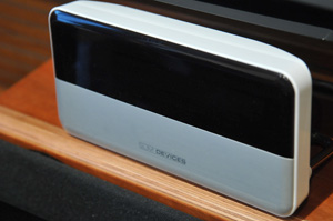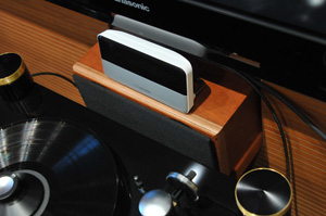 中置音箱上面所擺放的 Slim Devices Squeezebox 3 ,。