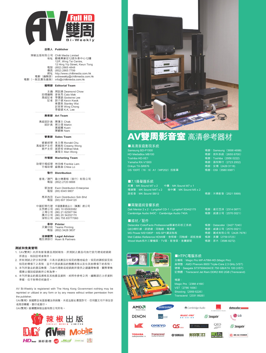 鳴謝AV雙周提供資料相片,及受權刊出封面目錄。