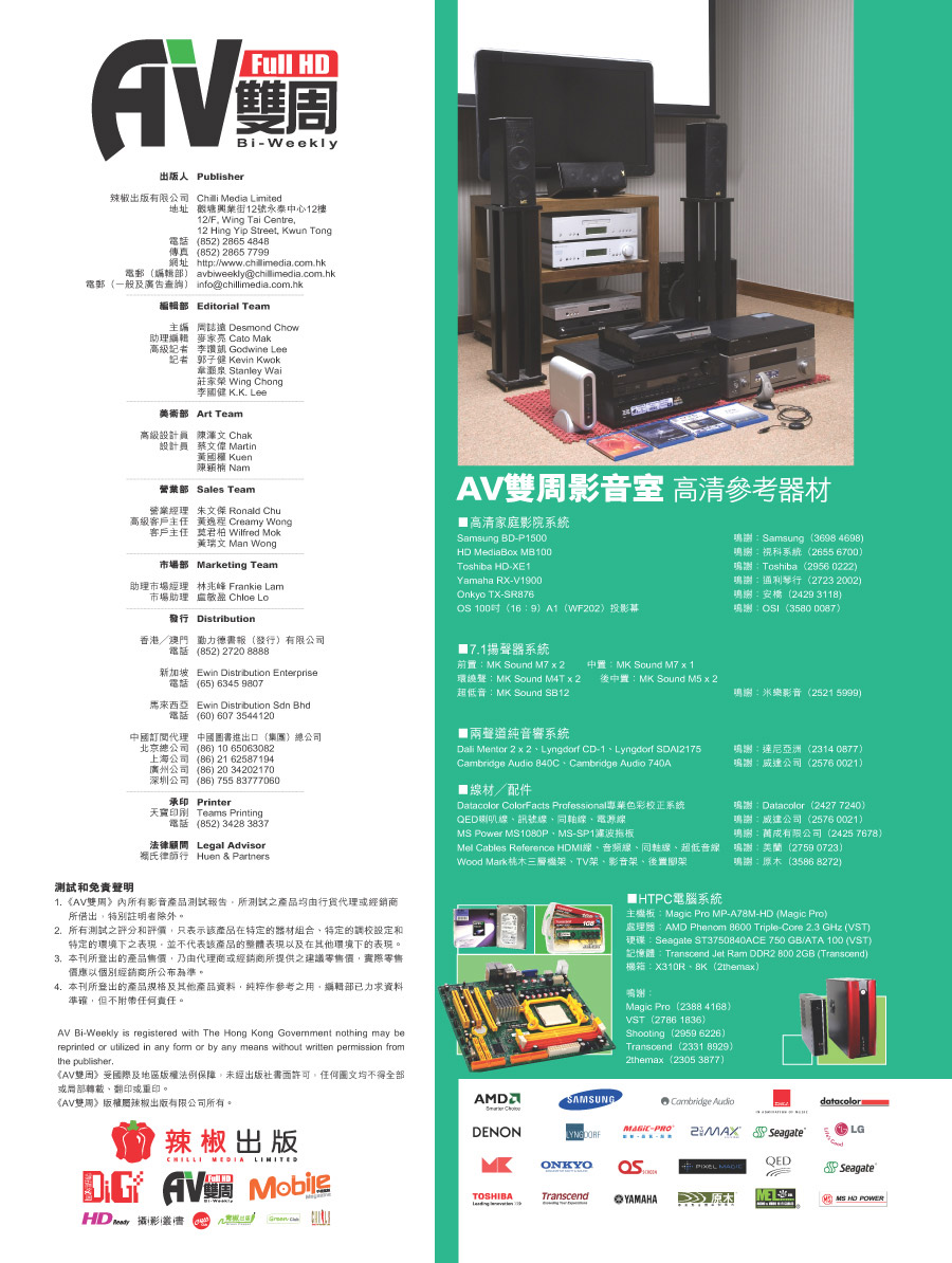 鳴謝AV雙周提供資料相片,及受權刊出封面目錄。