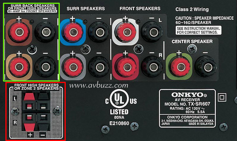 用家可選擇用Av amp所提供的後中置或 Zone 2 聲道,作為 front height channels 佔用。