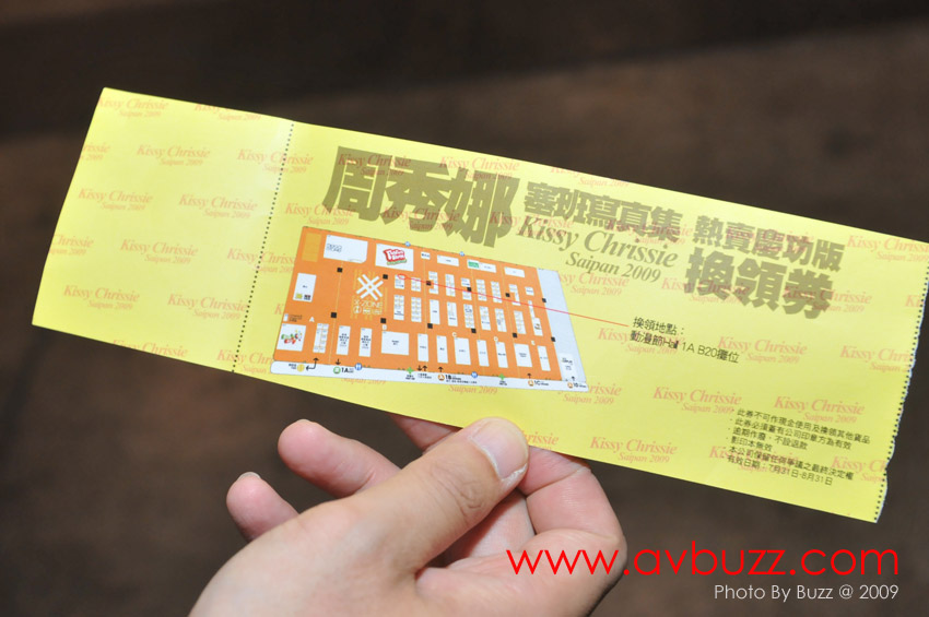 動漫節第一日,Denny拿著一早訂購了的第二版 Kissy Chrissie 寫真集換領券,到會場換書。