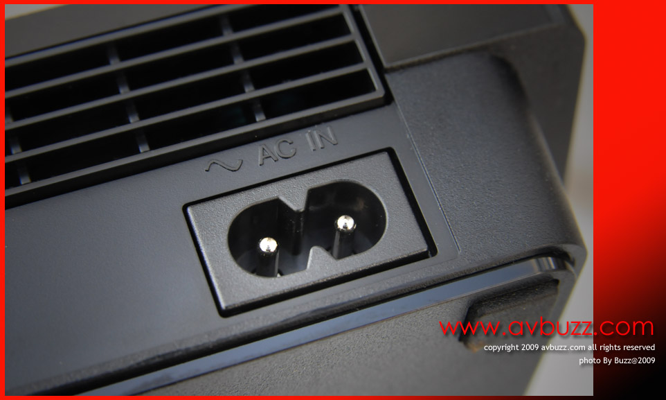 Slim 版背面的電源接口,這個位置和舊版是有極大的不同,不但沒有了電源開關鍵,而且接頭是由原本的IEC頭,