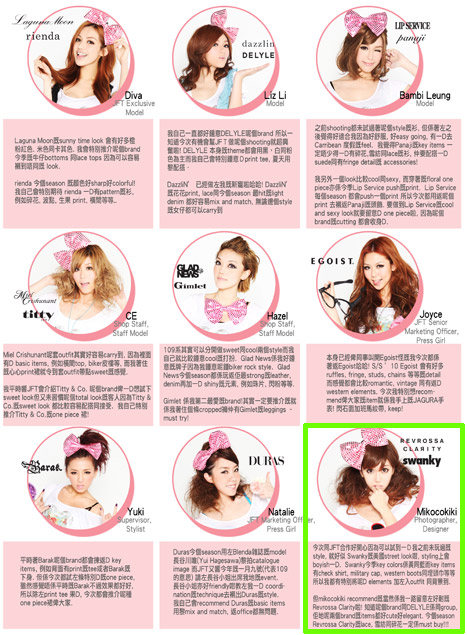 透过下图,可见到这辑相一共有九位香港女生作为今次的Model,其中一位是 Mikoco 自己客串。
