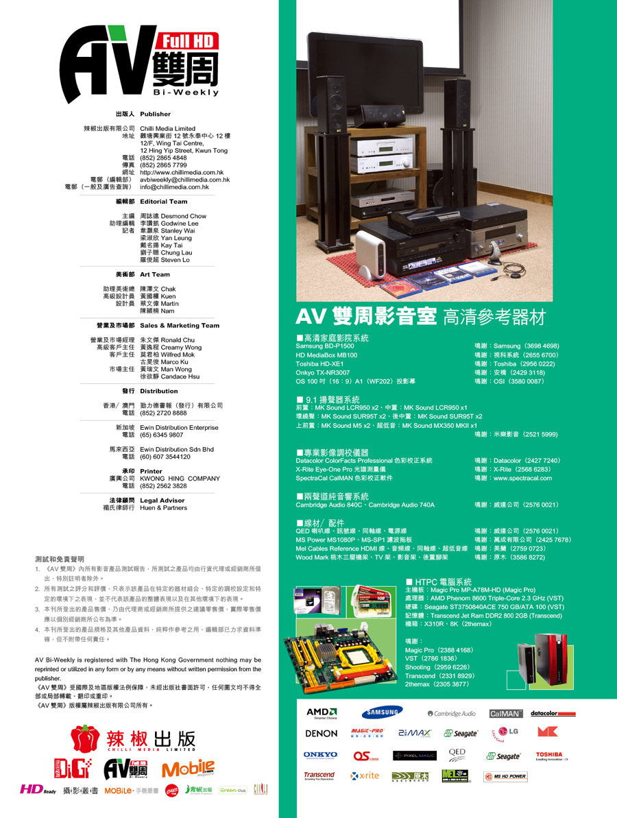 鳴謝AV雙周提供資料相片,及受權刊出封面目錄。