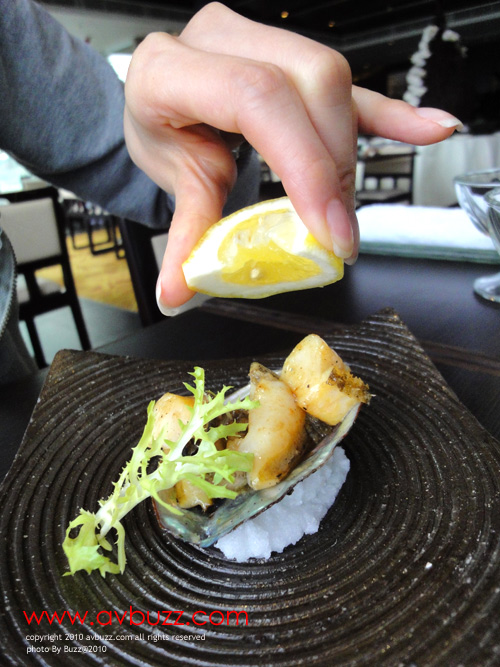 這個餐,每位都提供一隻鐵板長崎小赤鮑, Vivica 喜歡落檸檬汁,而我就喜歡原味呢~~