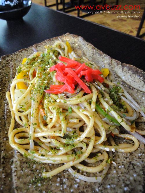 圖中左手邊是鐵板炒野菜,和右手邊的鐵板炒麵 。