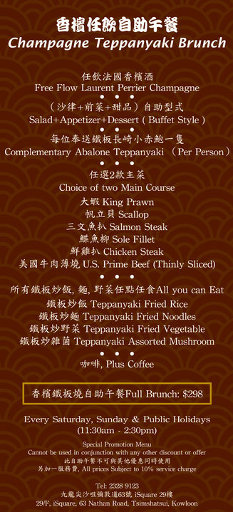 在菜單上見到這裡剛剛推出了一款名為 : 香檳鐵板燒自助午餐,收費每位 $298 ,