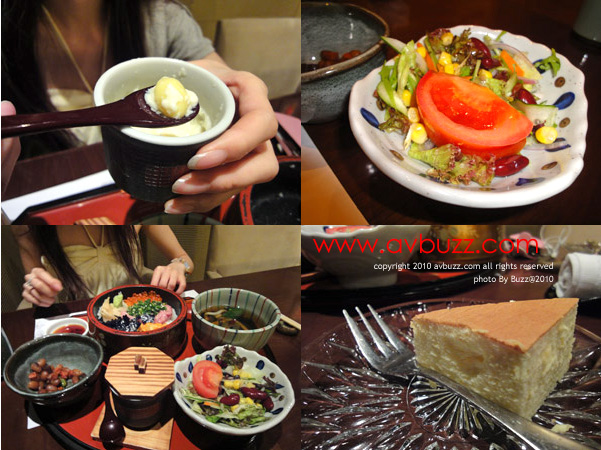 我食完自己整個餐,包括烏冬,還有蒸蛋,沙律和芝士蛋糕甜品,還有 Vivica 由她的三色飯分出來的分甘同味,先算是飽。