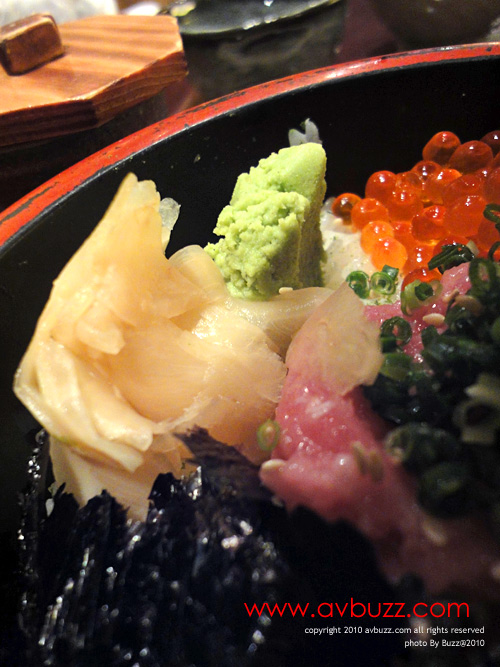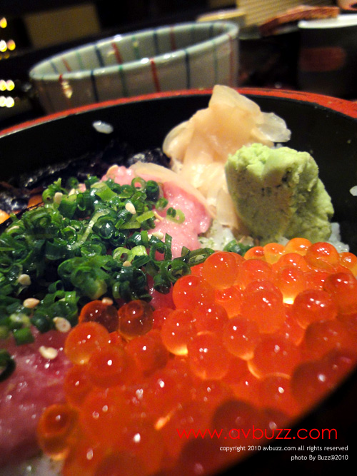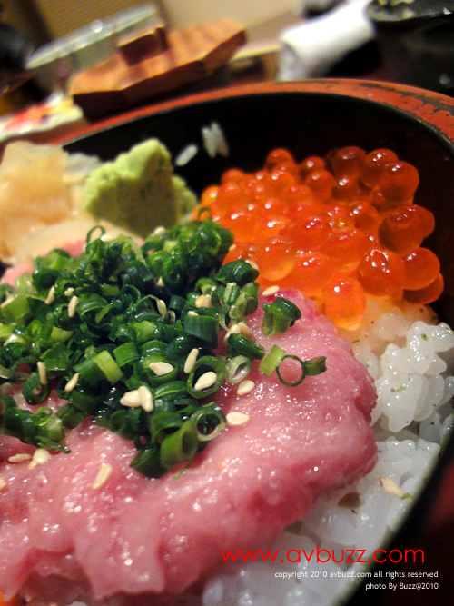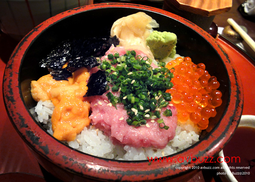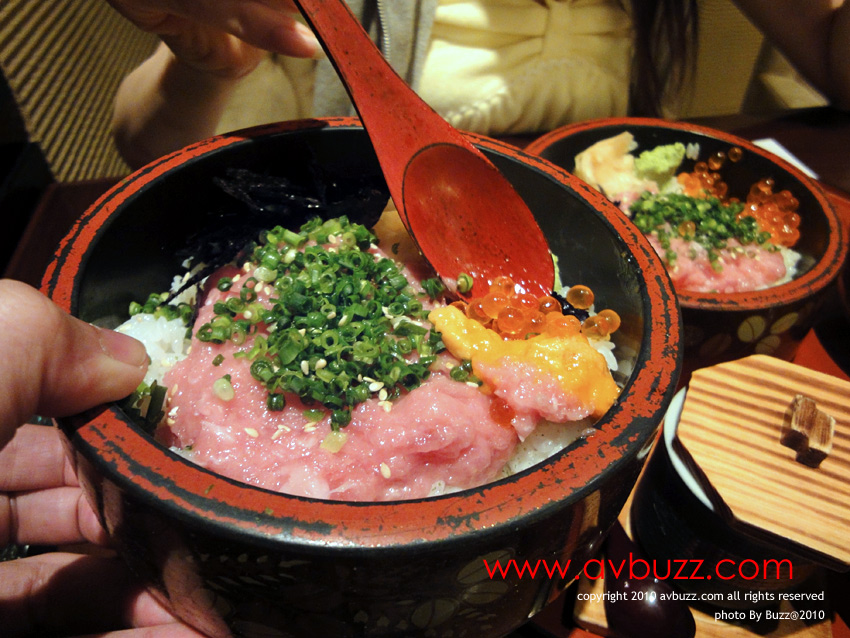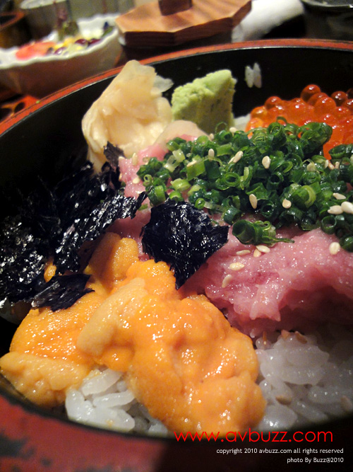 講返 Vivica 的三色魚生飯,很多配料,同一時間有吞拿魚腩,三文魚子,還有海膽。