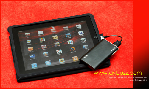 所以這個原本給 i Phone 4用的流動能源庫,同樣適用於 iPad上。