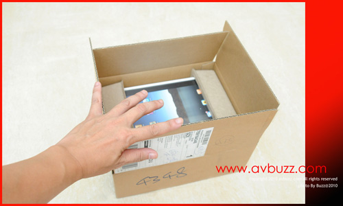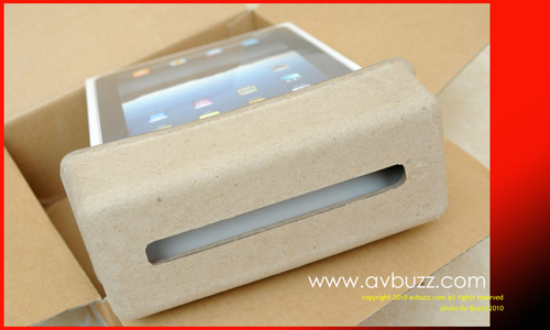 開箱後可見到內裡所擺放的 iPad ,一頭一尾提供足夠的保護。