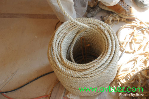 另一位幫手,就在遠處準備另一條長麻繩。