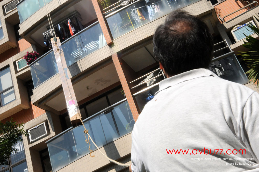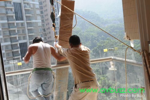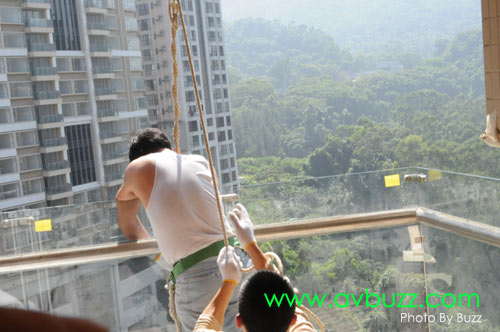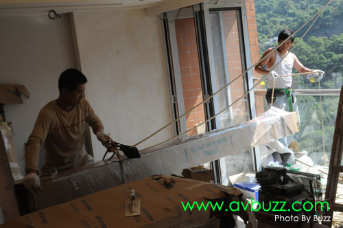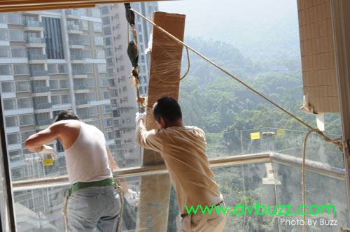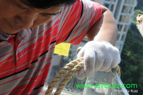 一陣間,光哥就會在呢個位置,把這枝幕吊上16樓。