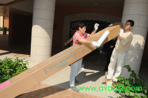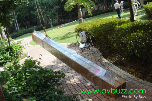送貨目的地,正是大堂入口前面公園,運輸公司的司機也非常好奇住上看呢~~~