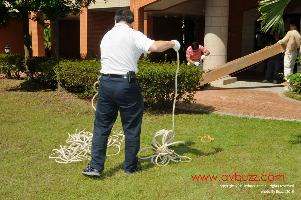 接下來就係把圖中的 200米長麻繩,經過滑輪,來回16樓和地面之間。