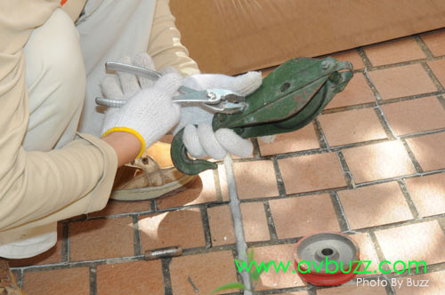 光哥居然可以用單手,而且用呢個角度鎖孔,還用鎚仔在呢個角度把羅絲打入孔內,實在利害~~~