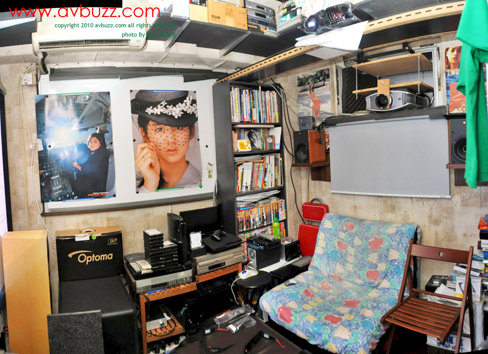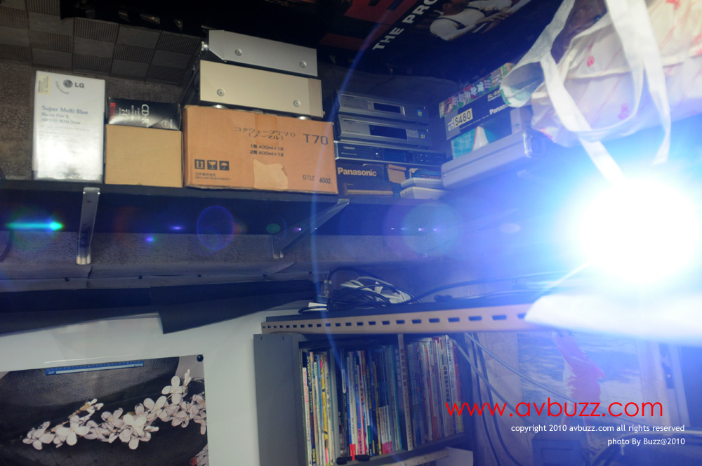 這晚來到他家中,入到屋就見到 3D 投影機被擺放在半空上。