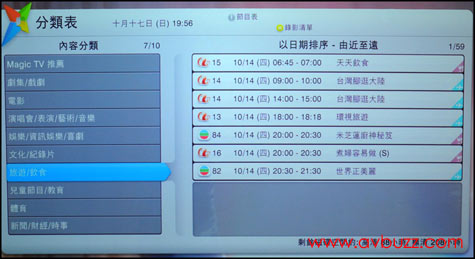 圖中所見,是電視台節目表,預設的是依頻道來排次序,