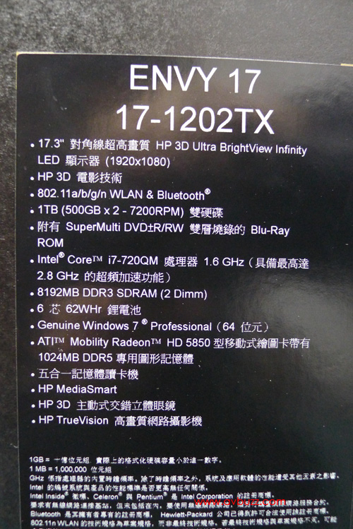 先看看這機 HP ENVY 17 -1202TX 的基本資料。