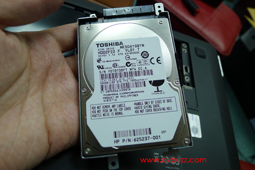 體內一共有兩個 Toshiba 500GB 7200rpm 轉硬碟,圖中所見是一左一右擺放在一起。