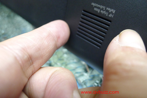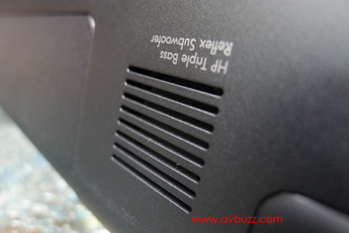 細心留意機底,可見到HP Triple Bass Reflex超低音喇叭,