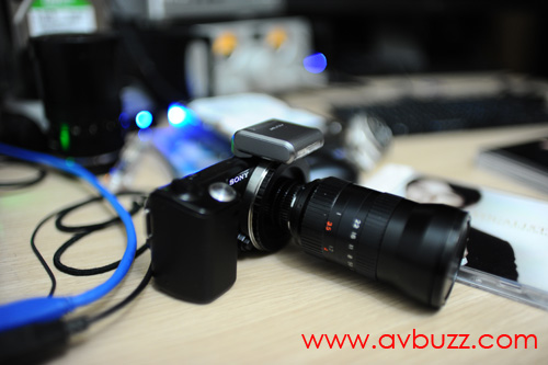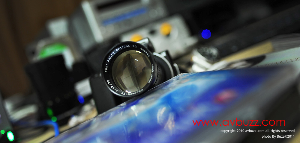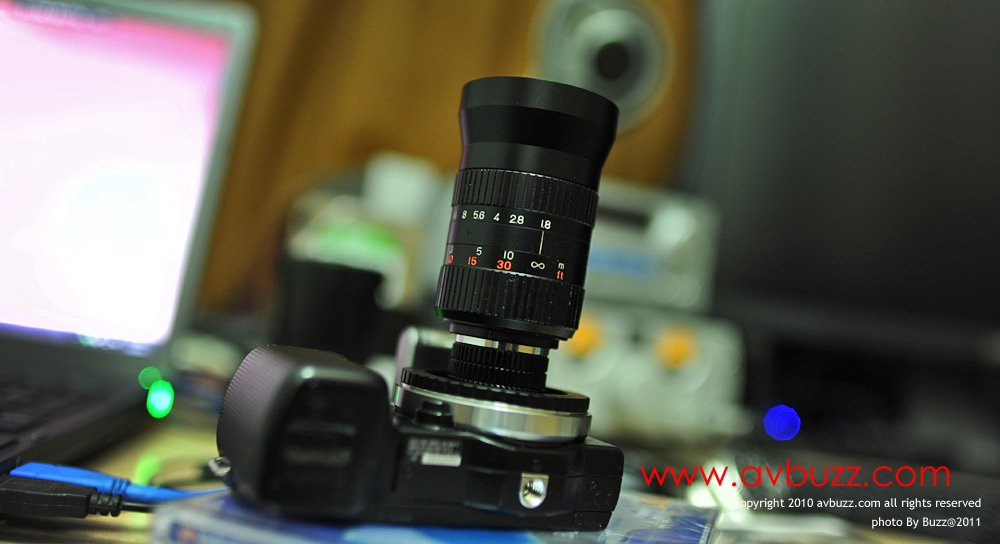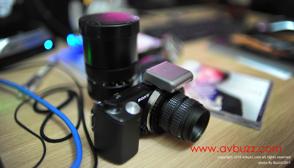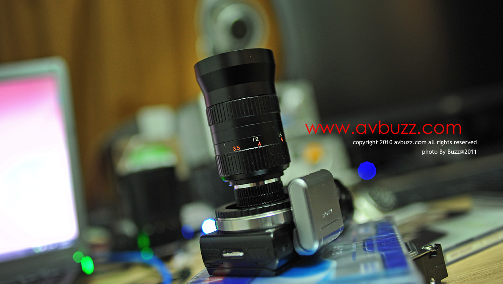 下圖為 FUJINON-TV 75mm F1.8 接上NEX-5 後的樣子。
