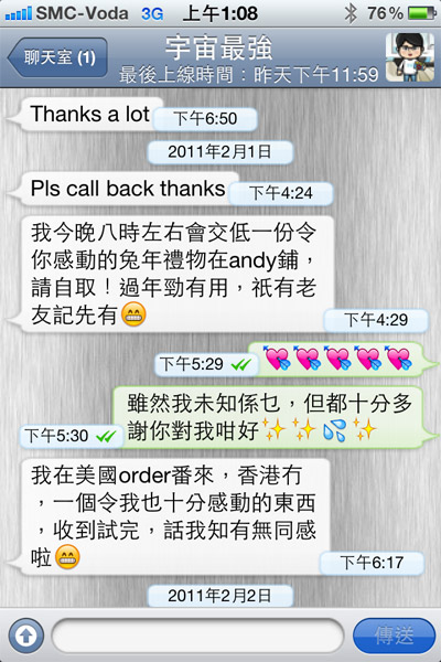 我感動的是他專程由美國訂回來送給我作為新年禮物。