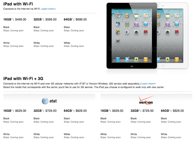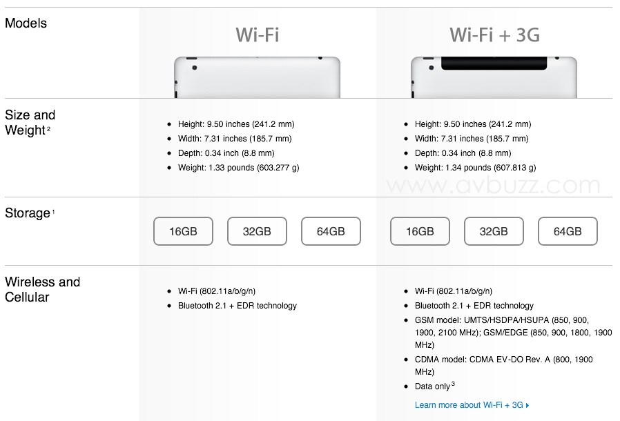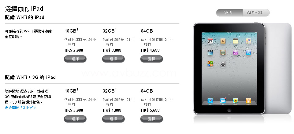 iPad 2 有三個容量給用家選擇購買,分別是下圖表所見。