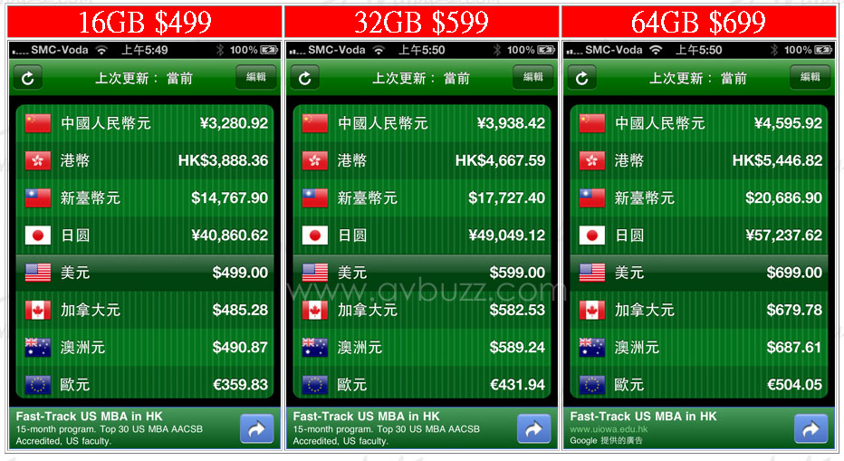 仲有埋美國本土的3G上台價目表添~~~似乎在美國本土,3G+Wi-Fi版是要被綑縛呢~~~