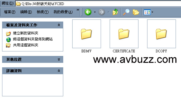 假設硬碟名稱是 Q 的話,示範例子在電腦上所見路徑如下 Q : \ 煞破天劫 \ AVCHD\ 所有內容。