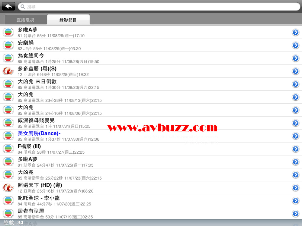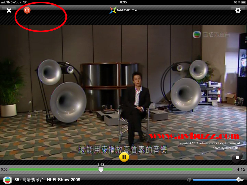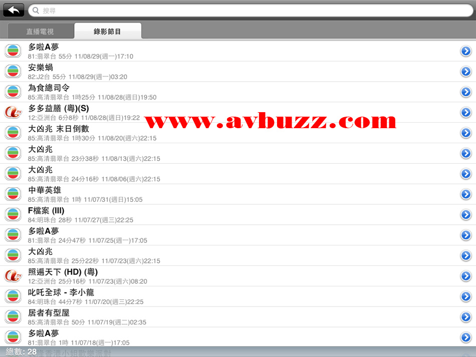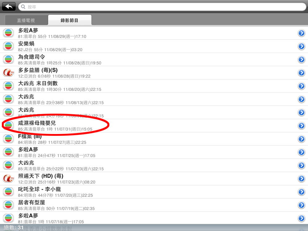 重溫 MTV 7000D錄好在硬碟的電視節目,可在 iPad / iPhone 這個直播節目畫面狀態下,按左下角的選台鍵。