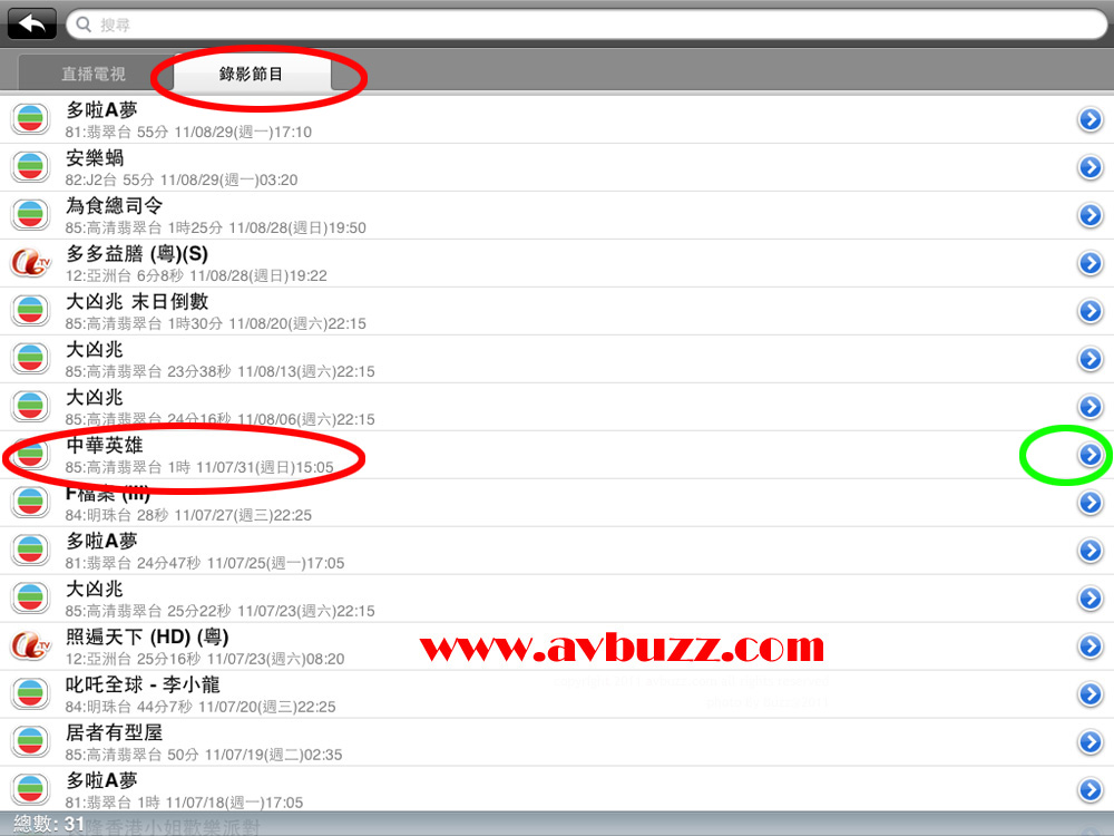 以下示範修改一個叫中華英雄的節目,在所屬的箭咀 ( 綠色圈 )按一下。