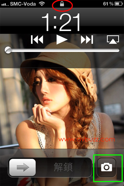 在手機備用狀態下,連按 Home鍵兩次,就會同時出現聽歌和影相捷徑鍵。