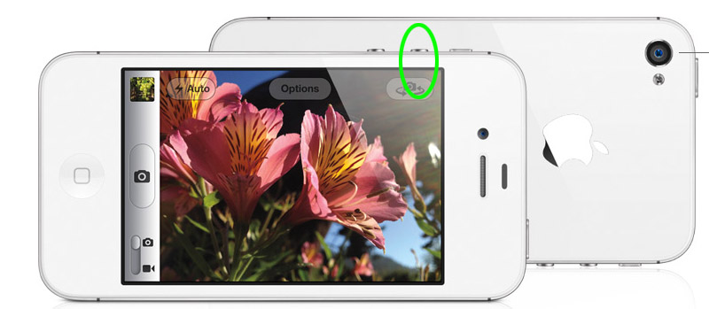 機身上的音量鍵 ( + ) 號,可變成拍照時的 Shutter 鍵,並不是 4S獨有功能,iPhone4 韌體更新成 iOS 5 同樣可擁有。