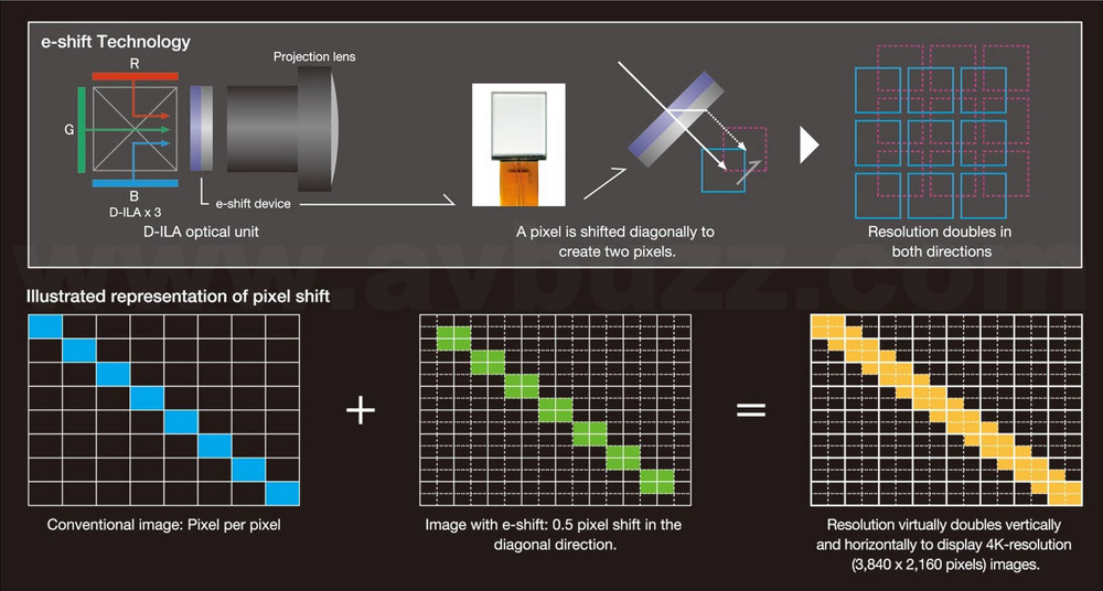 Á¿¨ì JVC¿W¦³ 4K e-Shife §Þ³N¡A¥O 2K 1920¡Ñ 1080 ¸Ñ¹³«×¤j´T¼W¦Ü 3840 x 2160 §Y 4Kªº¸Ñ¹³«×¡C