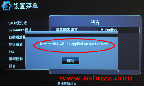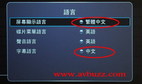 如下圖所見,把屏幕顯示語言和字幕語言都設成紅圈所示。