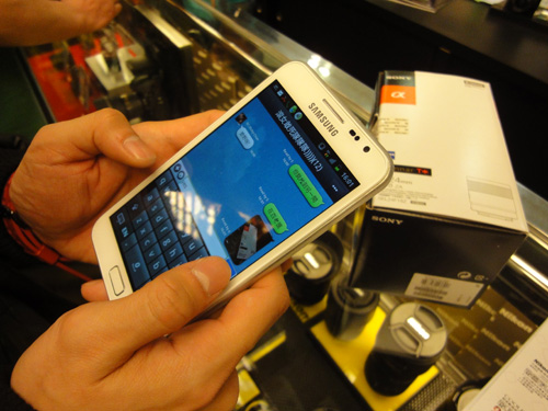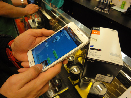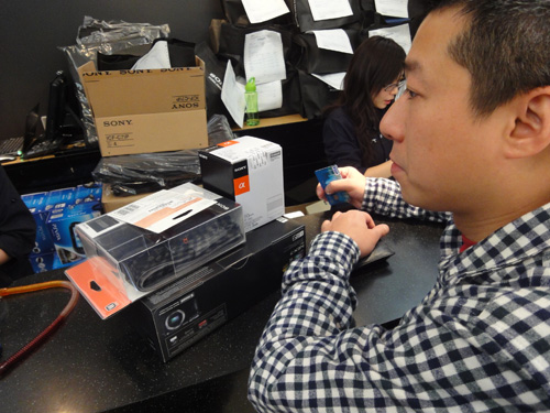 於是合共 4部 NEX -7的保護貼,就交到這位哥哥仔手上去貼了,平均一分鐘就貼起一部,噢~~~實在太爽了吧。